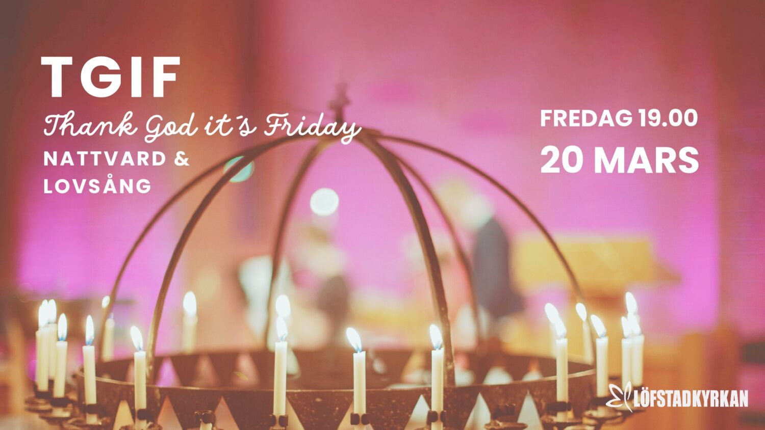 Äntligen fredag! Vi firar in helgen med lovsång och ett enkelt nattvardsfirande. Varmt välkommen, gammal som ung!